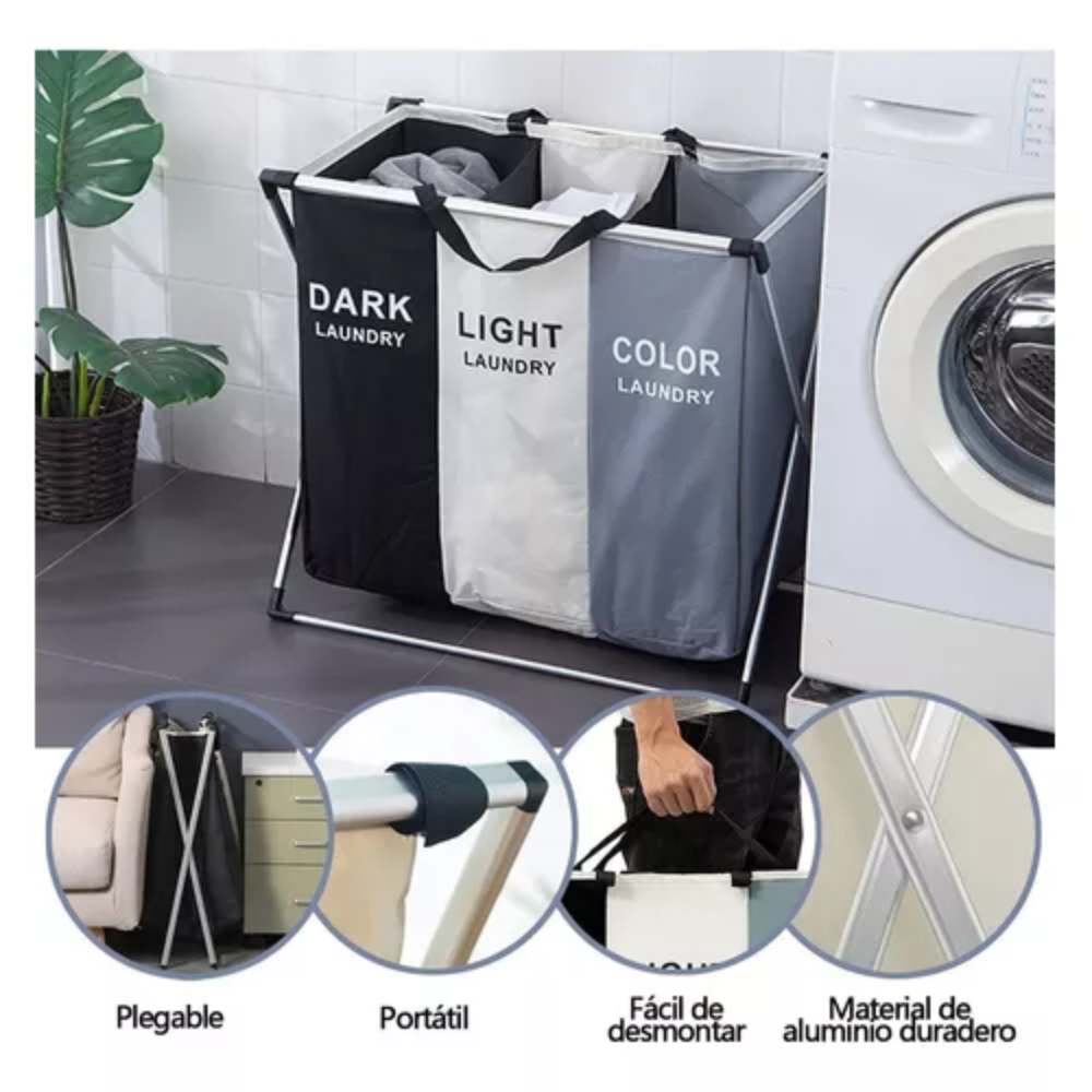 - Multifuncional: 3 secciones de lavandería, se puede utilizar para separar la ropa de adulto y la de los niños, ordenar ropa sucia y ropa limpia o ropa de diferentes colores, también puede almacenar otros objetos como juguetes, bolas, etc.