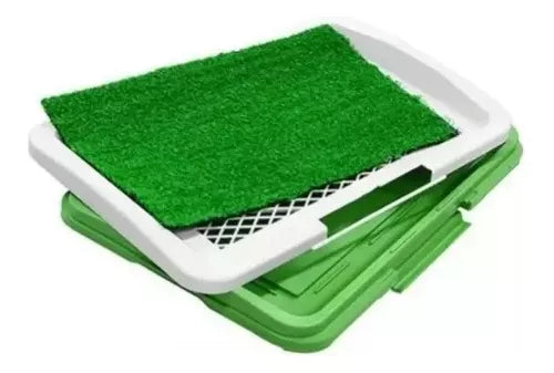 Material completamente lavable, por lo tanto tu mascota podrá usarlo muchas veces.. Se trata de una bandeja que se ve y se siente como césped y esta impregnada con agentes antimicrobianos y un olor atrayente para que tu perro lo utilice